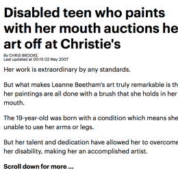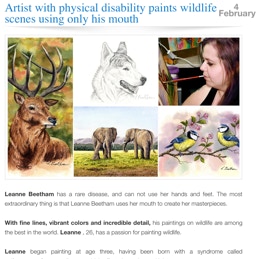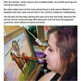 All Content On This WebPage, including the "Lippy~Art" name, Is Copyright ©. 2008-present. Permissions To Reproduce Leanne Beetham's Artworks Are Granted Only To The "Association Of The Mouth & Foot Painting Artists" (AMFPA / MFPA / VDMFK).
